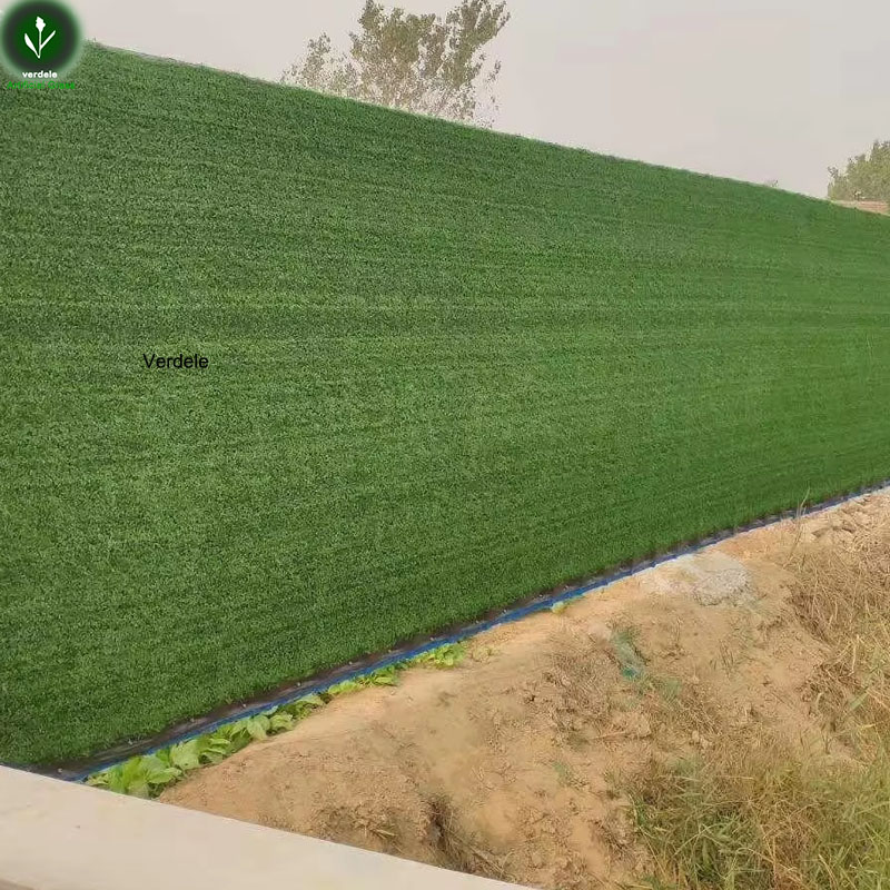 Compra barredora césped artificial ignífugo de 10 mm para cercas, vallas y muros decorativos. 65 100 puntadas/m², rollos de 2/4 m, certificación CE/SGS. Envío desde fábrica, precio mayorista.
