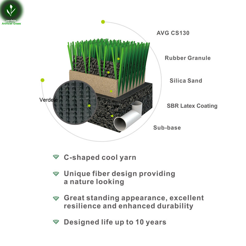 Gracias a su fórmula mejorada y a su tecnología de fibras resistentes, este césped soporta pruebas intensivas de desgaste, ofreciendo un rendimiento dos veces superior al de otros fabricantes con el mismo grosor. Con protección anti-UV y un acabado sin brillos, mantiene su color y aspecto natural durante años, incluso en condiciones de uso intensivo.