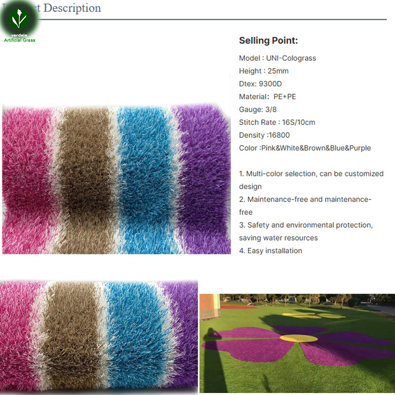 Césped artificial para parques infantiles Verdele-Colorgass: colores vibrantes, superficie segura y materiales no tóxicos. Ideal para guarderías y áreas de juego. ¡Resistente y lavable!