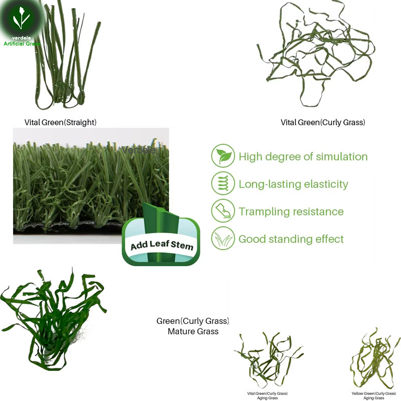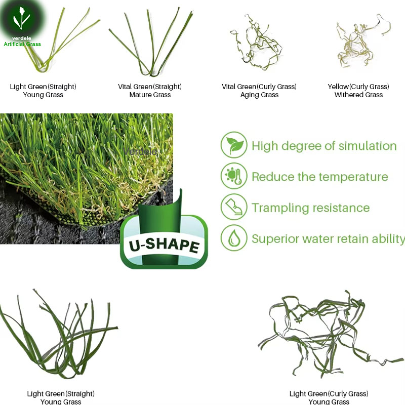 Las gramas artificiales son fáciles de instalar y mantener, sin la necesidad de riego, fertilización o podado. Su diseño flat y resistente a la deformación y las grietas lo hacen ideales para jardines y campos deportivos.