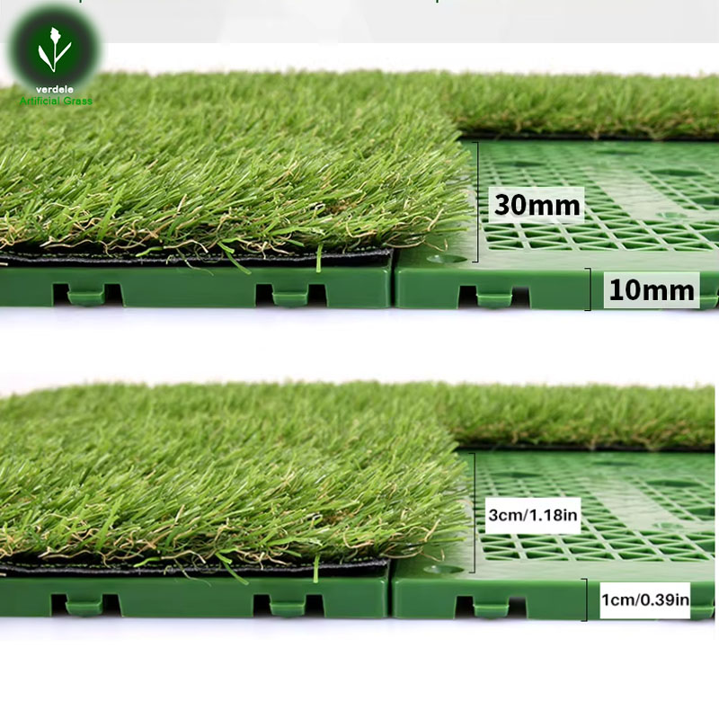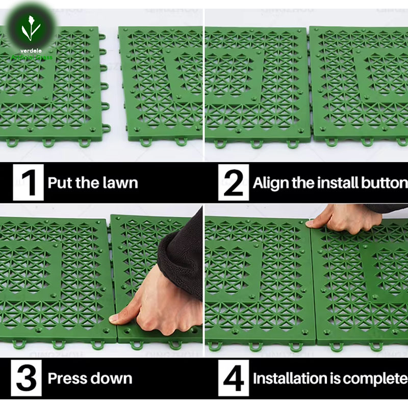 - Bajo mantenimiento: No requiere regado, fertilización ni corte, eliminando el mantenimiento constante que necesita el césped natural.